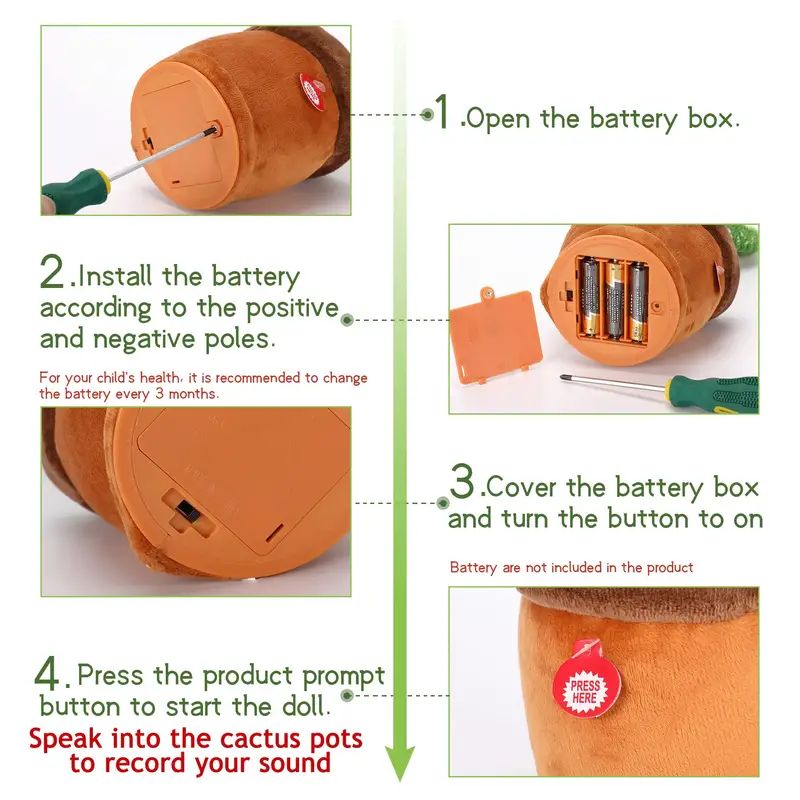 Dancing Cactus Speaking Cactus Baby Toy, Wrought Singing Cactus Repeated What You Say Baby Boy Toy, Plush Electric Saying Cactus 15 Seconds Recorder Baby Girl Toy