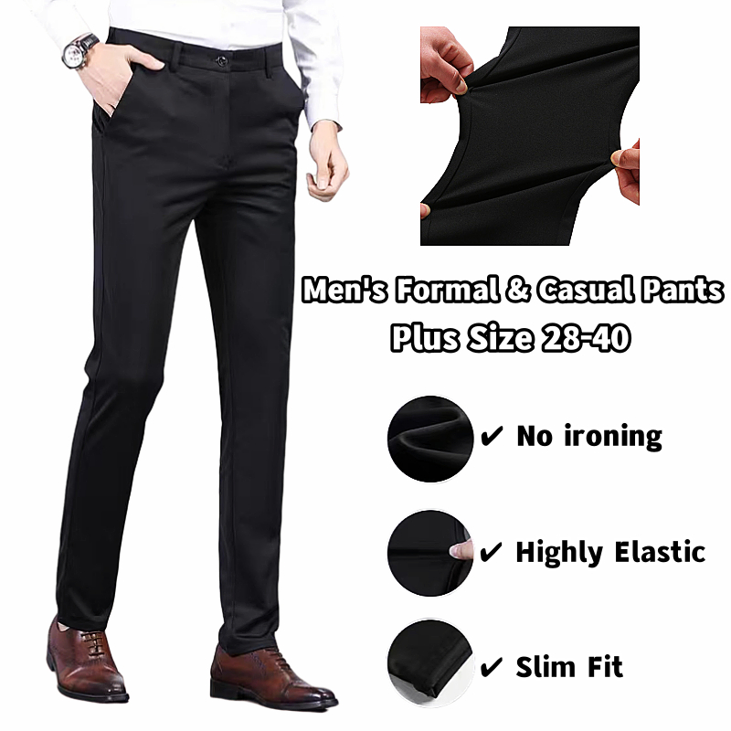 [Local Delivery] Men's Formal Suit Pants Non-ironing Stretchable Slim Fit Business Office Wear Plus Size Slack Casual Long Black Pant