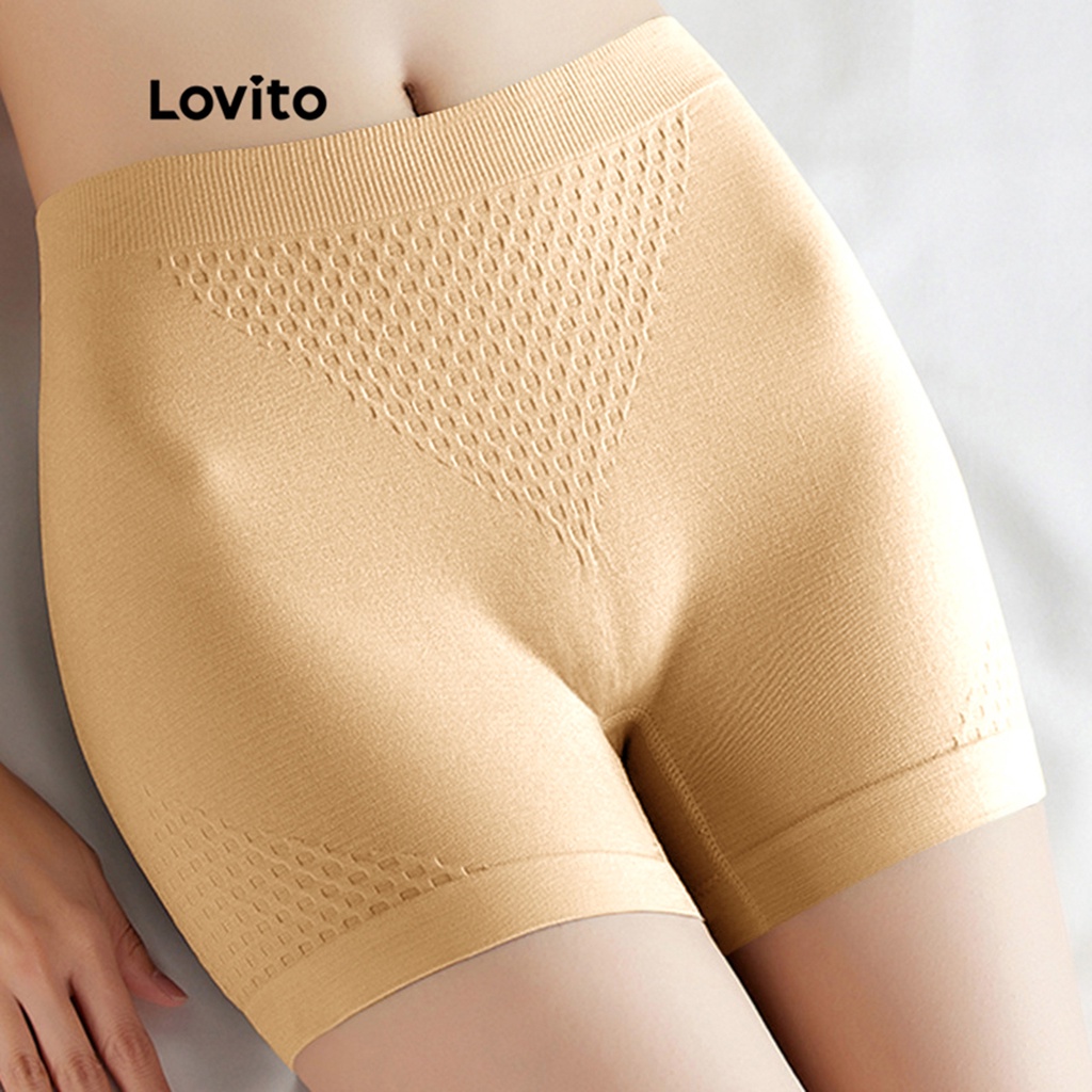 Lovito Casual Plain Boyshorts Seamless Safety Pants for Women L48L092 (Apricot/Grey/Black)