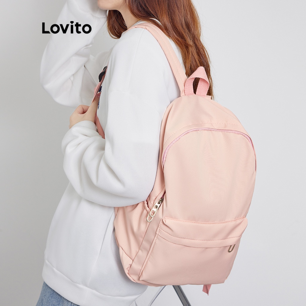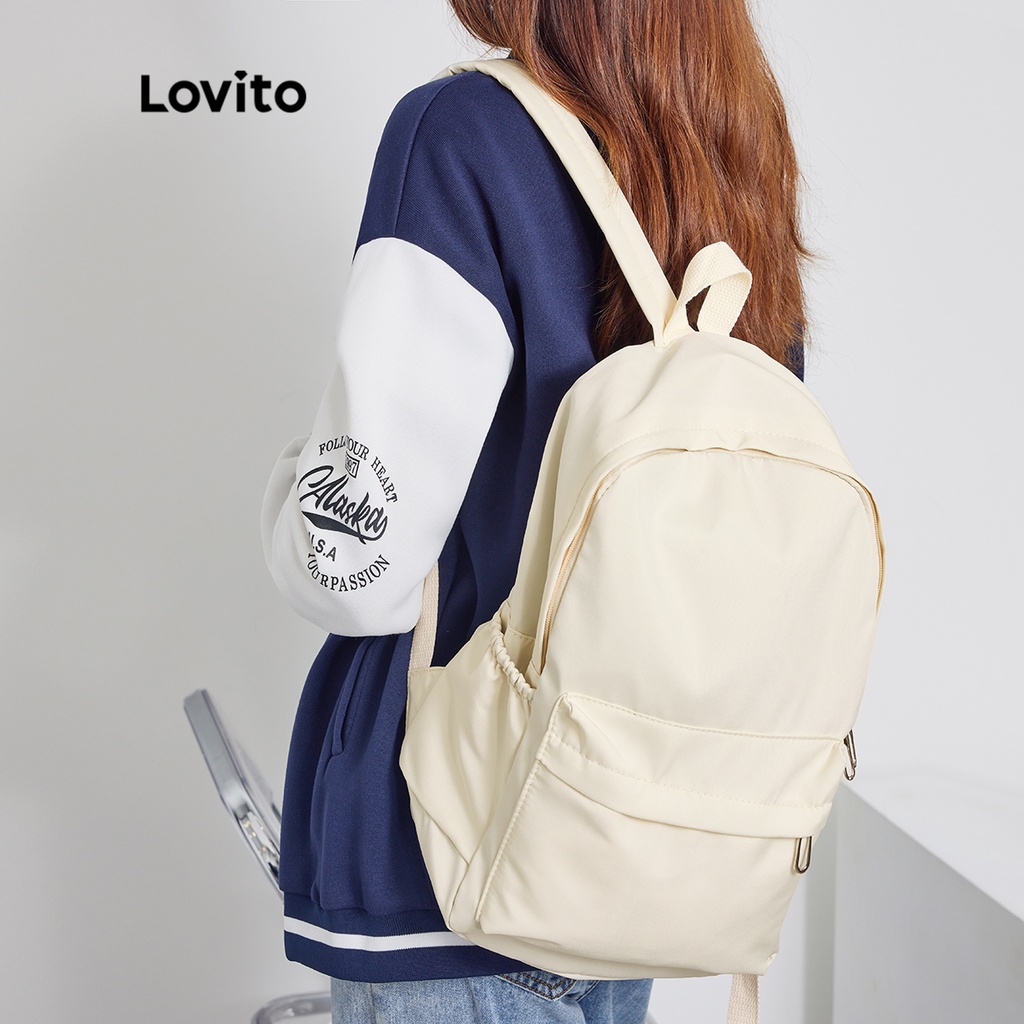 Lovito Preppy Plain Colorblock Double Shoulder Strap Multi-pocketed Backpacks L41BA05 (White/Pink/Blue/Black)