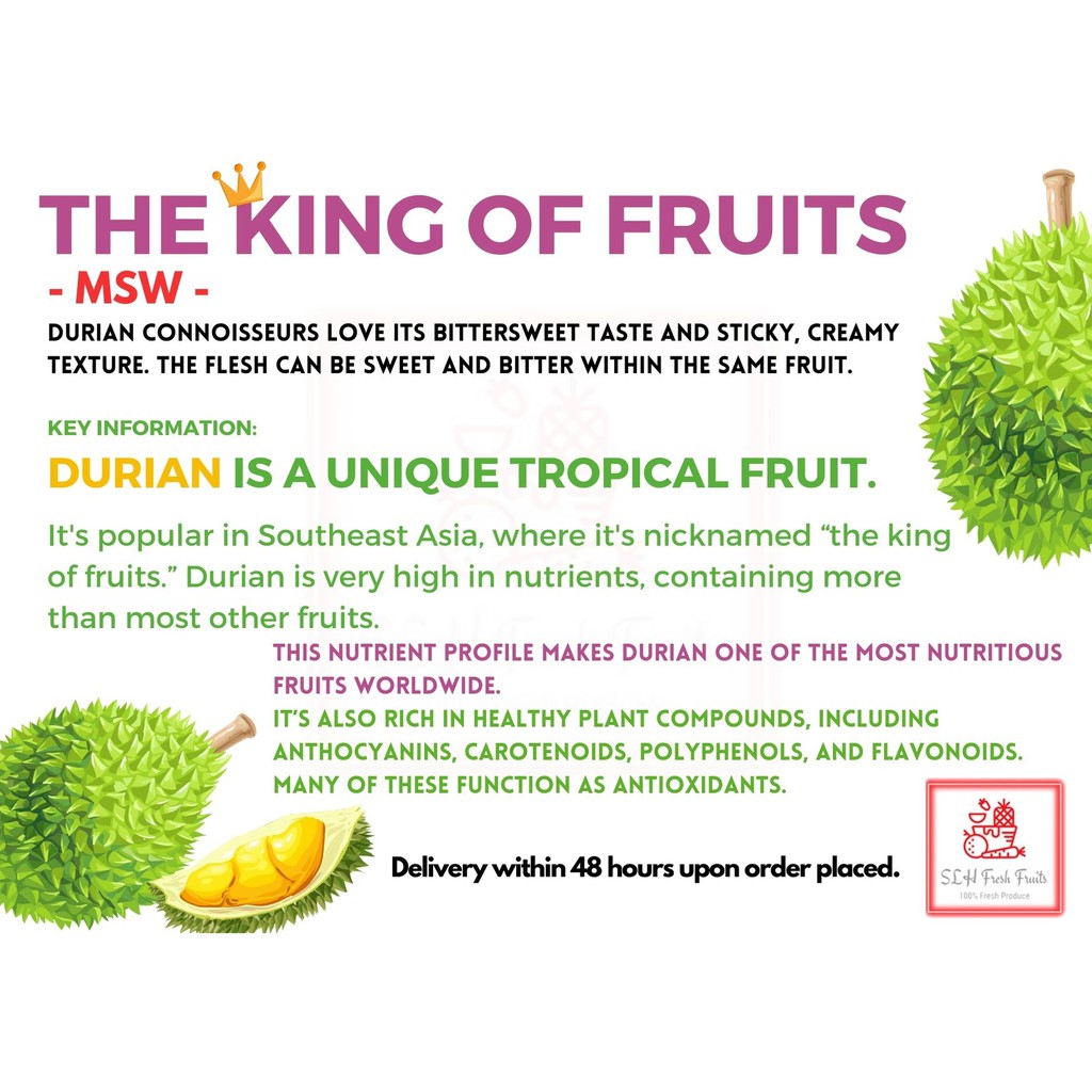 SLH 猫山王 (MSW) Fresh Durian Delivery 400g